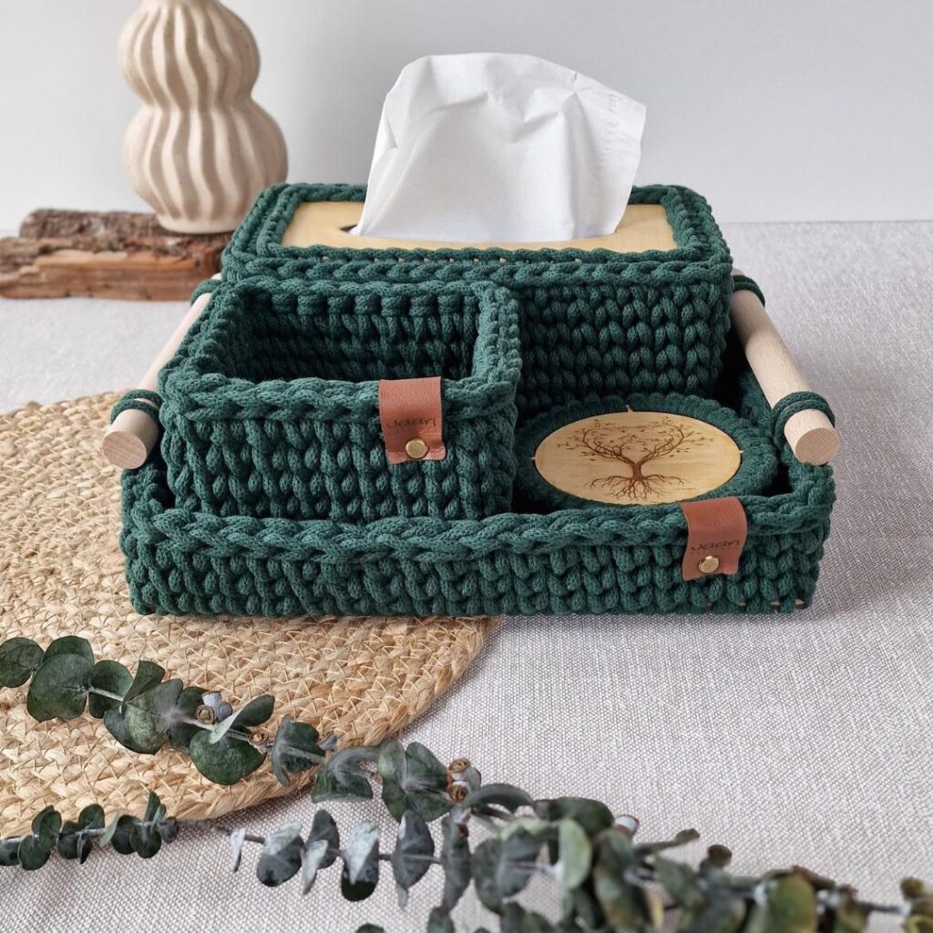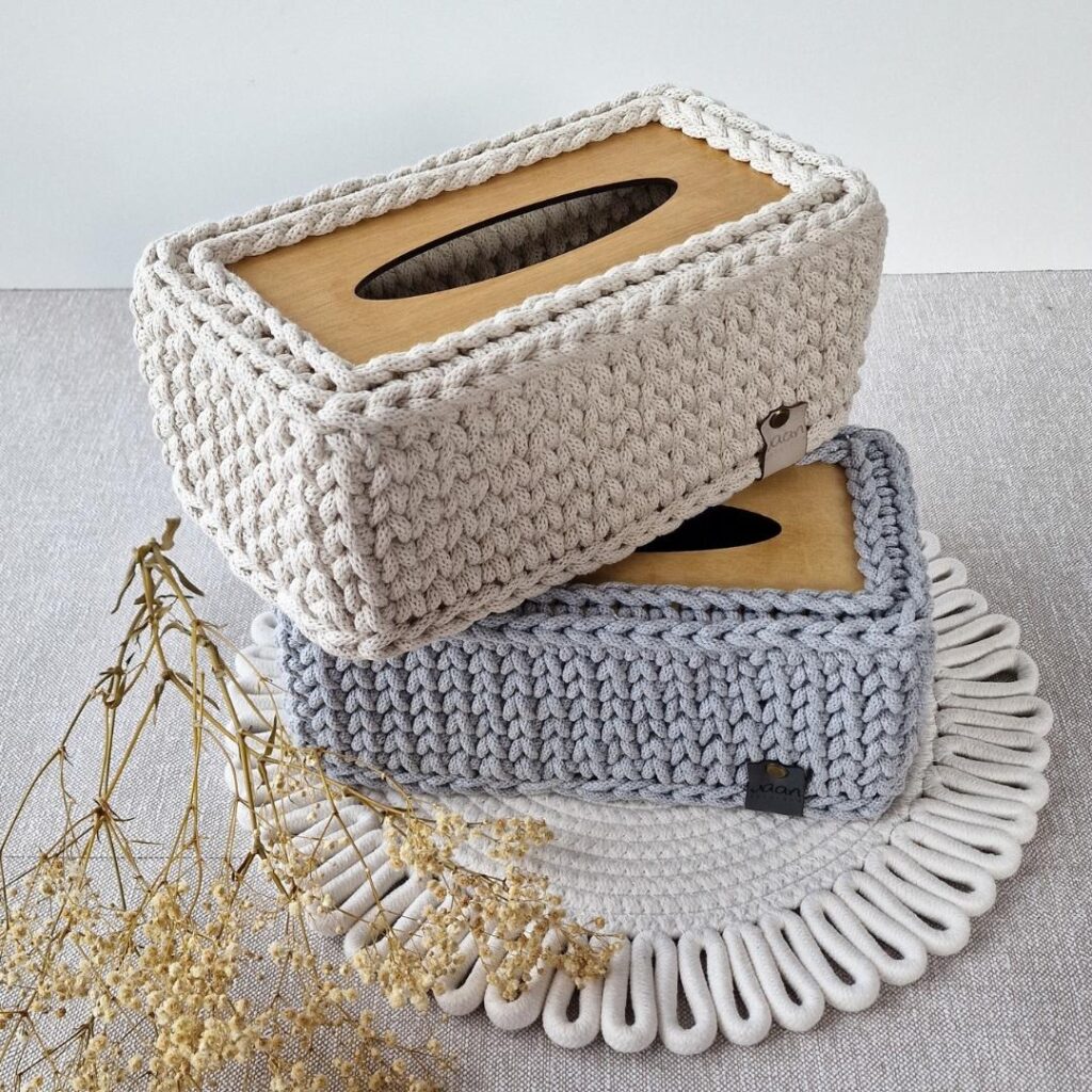 Mám pestrou nabídku dekorací háčkovaných, macramé i dřevěných. Neustále se snažím vymýšlet něco nového, ale srdcovkou pro mě budou vždy košíky, podnosy a organizéry, právě s nimi jsem začínala a jsou pro mě základem celé tvorby.