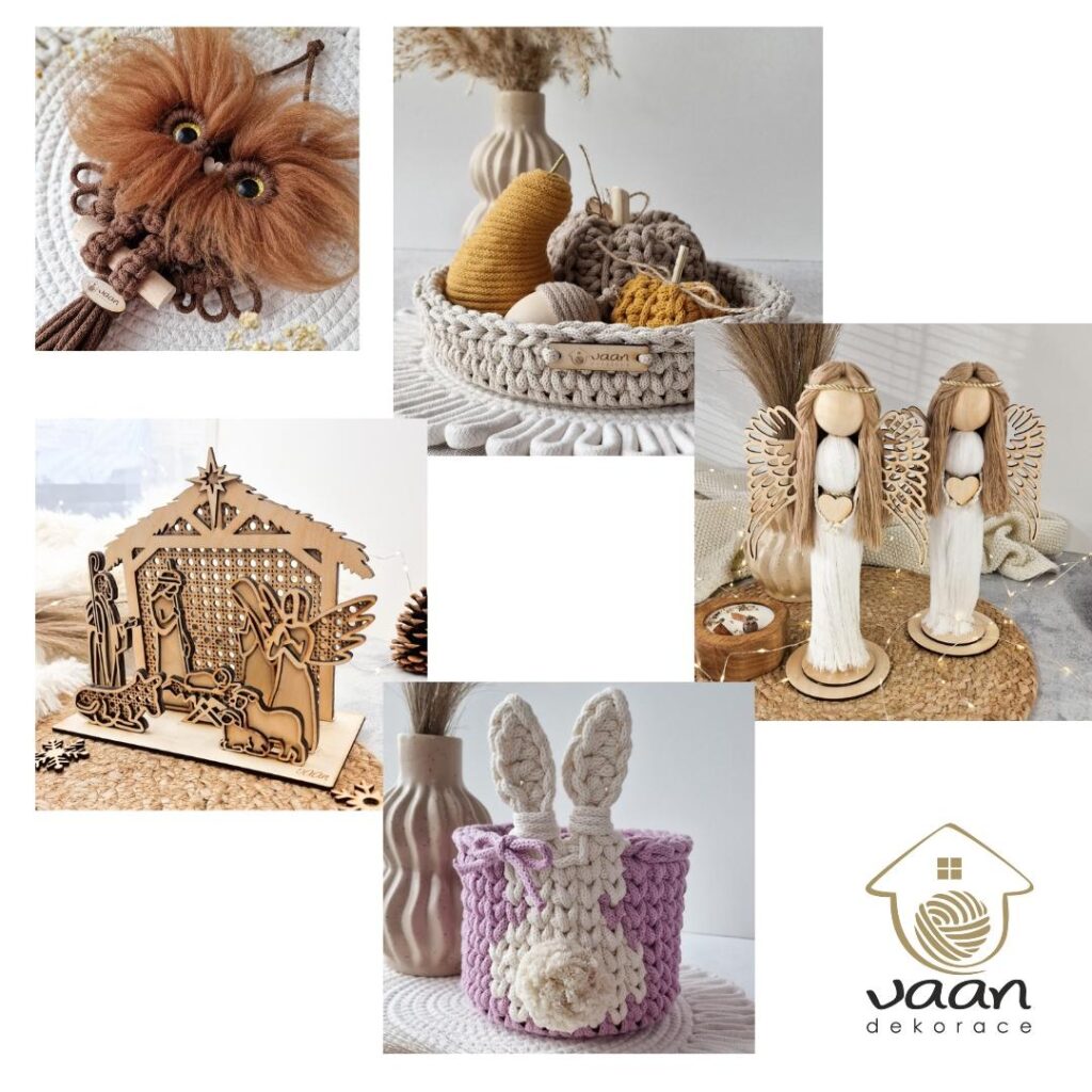 Na začátku jsem začala háčkovat plyšáky pro své děti, ale jednou jsem na internetu narazila na fotku háčkovaného košíku a chtěla jsem ho zkusit. No a už jsem u toho zůstala. Nejprve jsem si udělala pár košíků pro sebe, potom pro známé, a když se začali ozývat další lidé, vznikla značka Vaan dekorace a s ní i láska na celý život. Dnes už netvořím jen košíky do domácnosti, ale i sezónní dekorace, jako jsou velikonoční vajíčka, ošatky, háčkované podzimní dýně nebo vánoční ozdoby na stromeček, andělíčci, dřevěné svícny a betlémy… a spousta dalších výrobků.